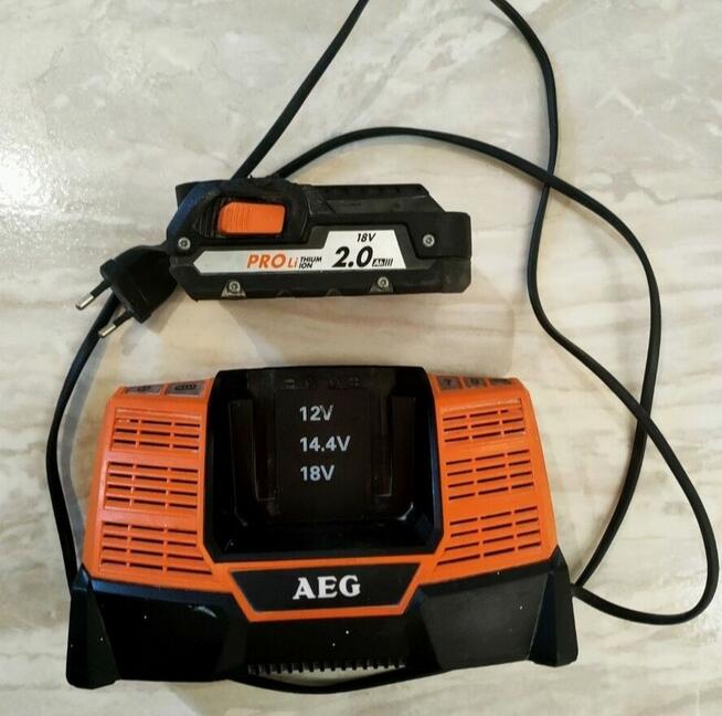 Sprzedam ładowarkę akumulatorową AEG BL1218 wraz z baterią o pojemności 2.0 Ah/36Wh 18V pozostałość po skradzionym ...